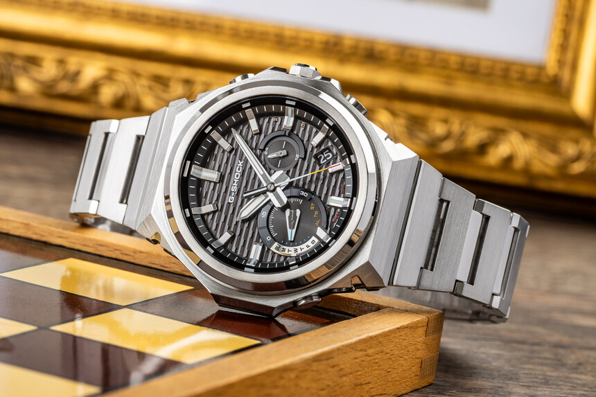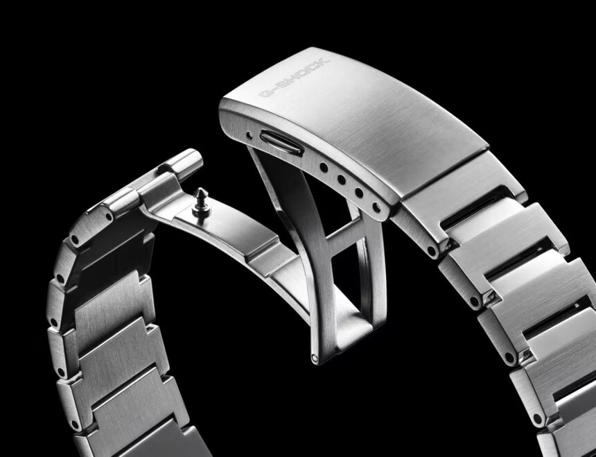 Elles avaient en commun un corps, voire un bracelet, en métal. L’ensemble paraissait nettement plus cossu que la résine, signature de G-Shock. Mais, outre ces éléments métalliques, elles affichaient des dimensions plutôt généreuses qui, si elles symbolisaient l’ADN G-Shock, contredisaient l’idée de formalité et d’élégance.