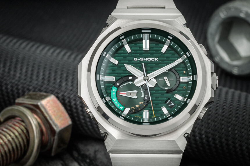 Le motif « brick » du cadran renvoie à l’histoire et rappelle l’une des premières G-Shock – la DW-5000C. Autour de leur affichage, elles arboraient déjà ce graphisme en « briques », auquel les GST-B1000 font clairement référence.