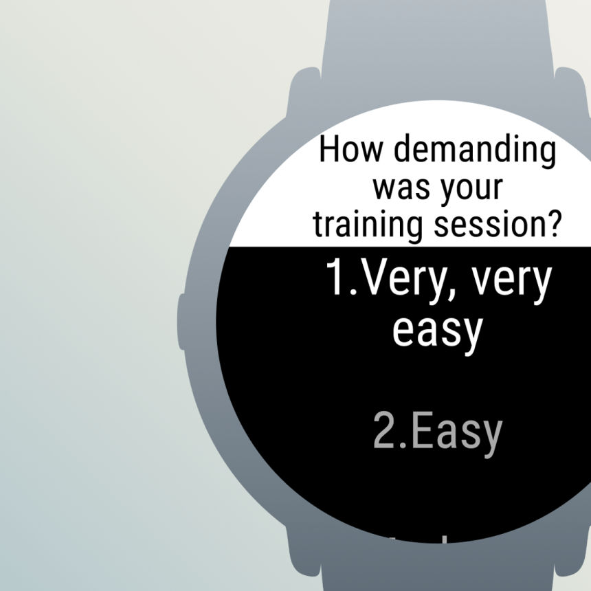On connaît ça depuis longtemps dans l'application, mais Polar l'a désormais ajouté directement dans la montre. À la fin de l'activité, vous pouvez saisir, sur une échelle de 0–10, votre degré d'effort perçu (RPE).