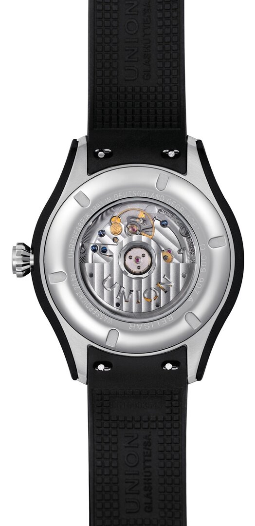 Mécanique avec remontage automatique. Union Glashütte UNG-07.S1, Réserve de fonctionnement 60h, 25.200 BPH (3,5Hz), 21 pierres, Piratage, Possibilité de remontage manuel