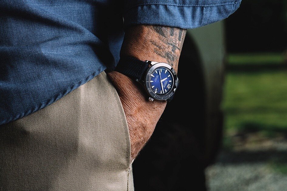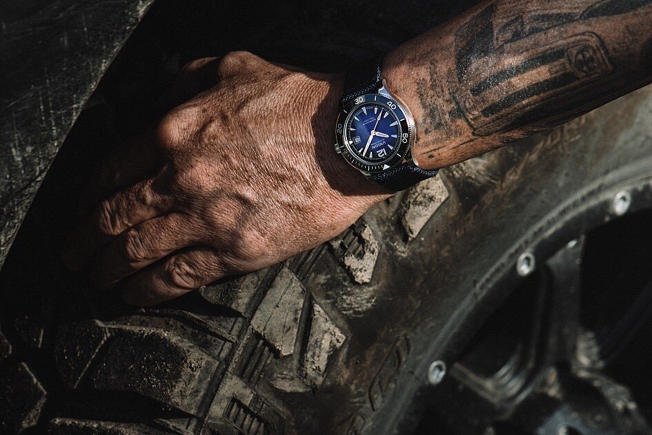 Hommes montre - textile bracelet, acier boîte , saphir verre. Tous les techniques les paramètres peuvent être trouvés ci-dessous